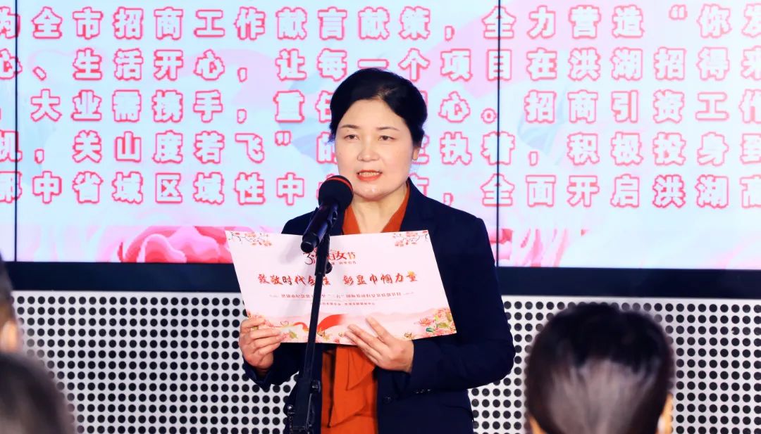 为引导全市妇女群众积极投身于推动洪湖高质量发展的主战场,党的十九大代表谢爱娥现场宣读了致全市广大妇女姐妹的招商引资倡议书,号召广大妇女群众投身到招商引资的主战场,共同推动洪湖县域经济高质量发展。