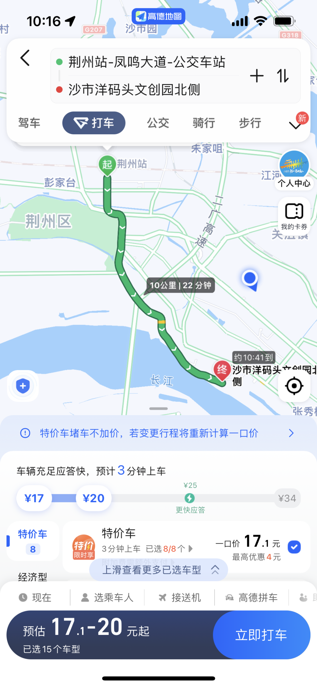 荆州火车站-沙市洋码头约10KM,费用20元左右