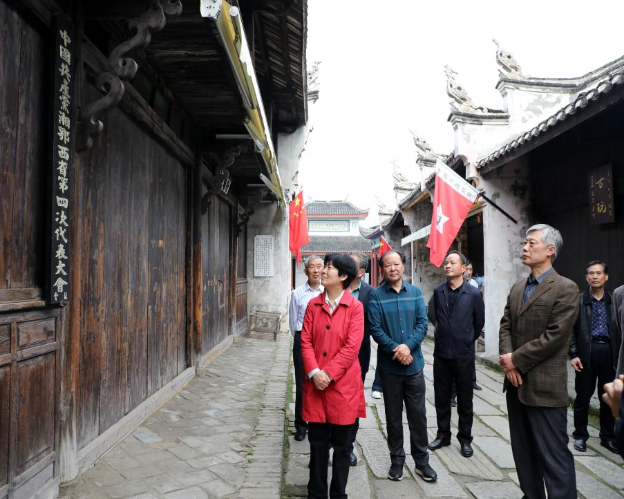 随后,调研组到瞿家湾镇月池村、陈湾村、瞿家湾村(社区)查看了农户家门口挂的木质对联,共计制作实木的红色对联1000多幅,并来到湘鄂西革命根据地旧址开展红色教育。
