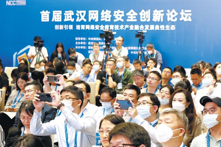 首届武汉网络安全创新论坛主论坛现场。(湖北日报全媒记者 倪娜 通讯员 晏君 徐一帆 摄)