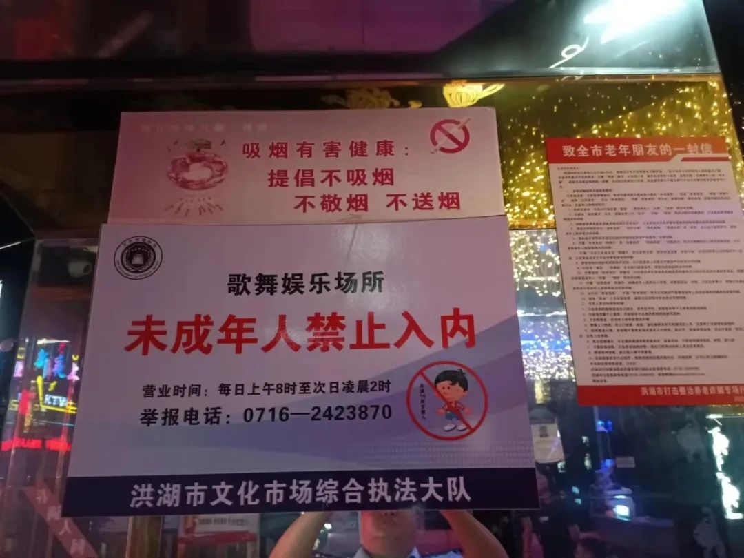 为了进一步规范我市歌舞娱乐场所经营行为,维护正常的经营秩序,近期,洪湖市文化市场综合执法大队围绕未成年人保护和“扫黄打非”等工作,组织开展歌舞娱乐场所专项整治行动,加大市场检查力度,依法打击违规经营。