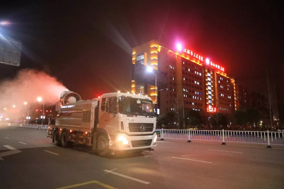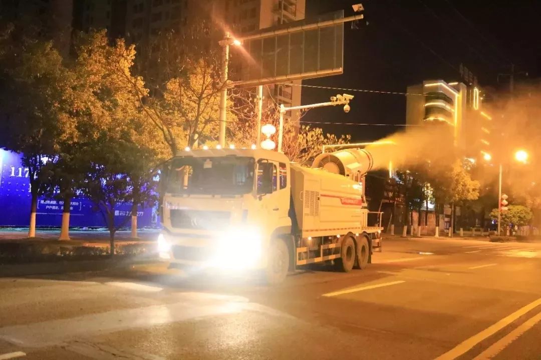 为最大限度减少病毒滋生蔓延,我市环卫局自2月1日起,每晚8点至11点坚持出动雾炮车喷洒84稀释液,对城区主次干道、医疗机构、市场商超及流量密集小区周边的公共区域进行消毒作业。
