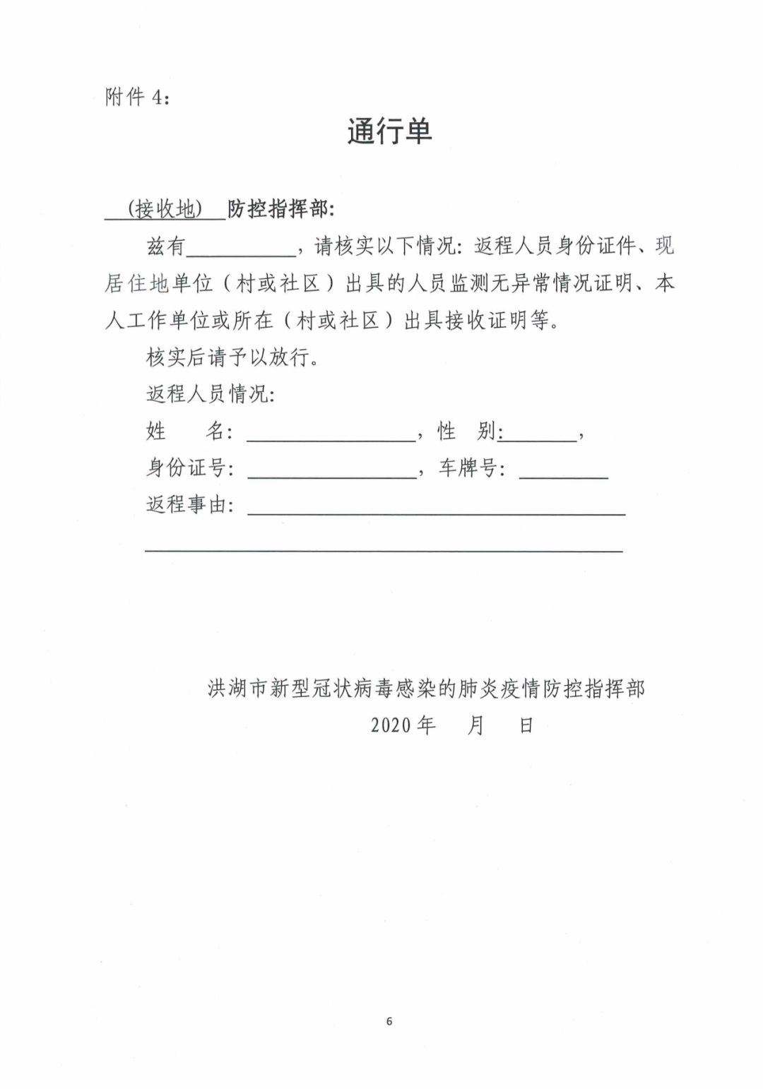 4.离洪人员凭接收证明、人员监测无异常情况证明和留观承诺书到通行证办理点(市公安局负责,地点:市信访局)进行审核,视情况发放《通行单》(附件4);