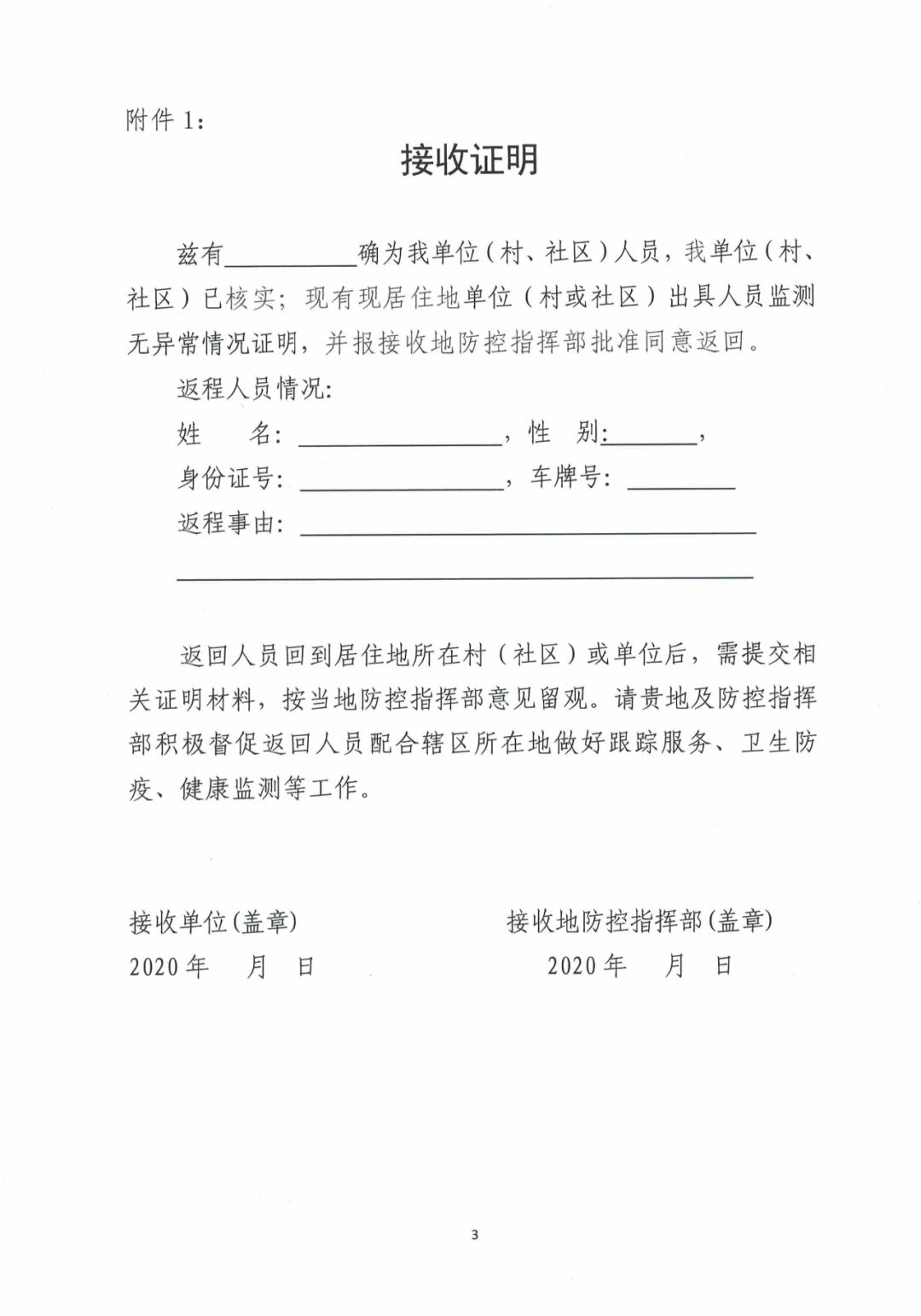 1.外地接收单位(村或社区)出具接收证明(附件1),并经接收地防控指挥部盖章同意接收;