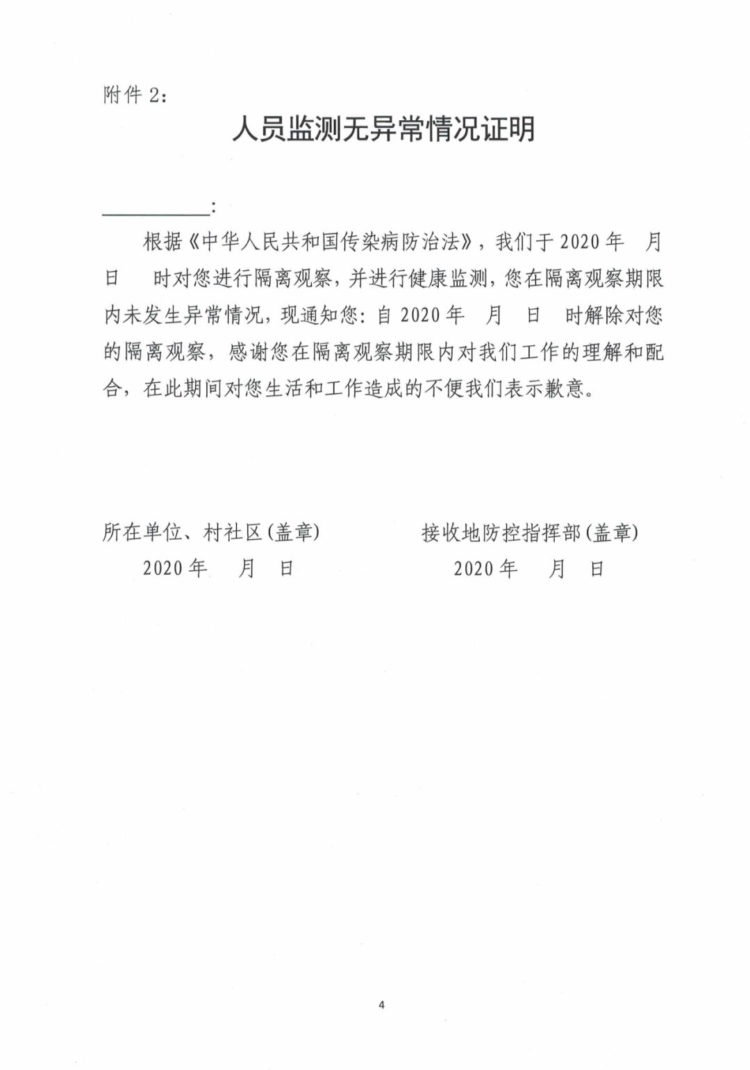 2.本地所在单位(村或社区)出具人员监测无异常情况证明(附件2);