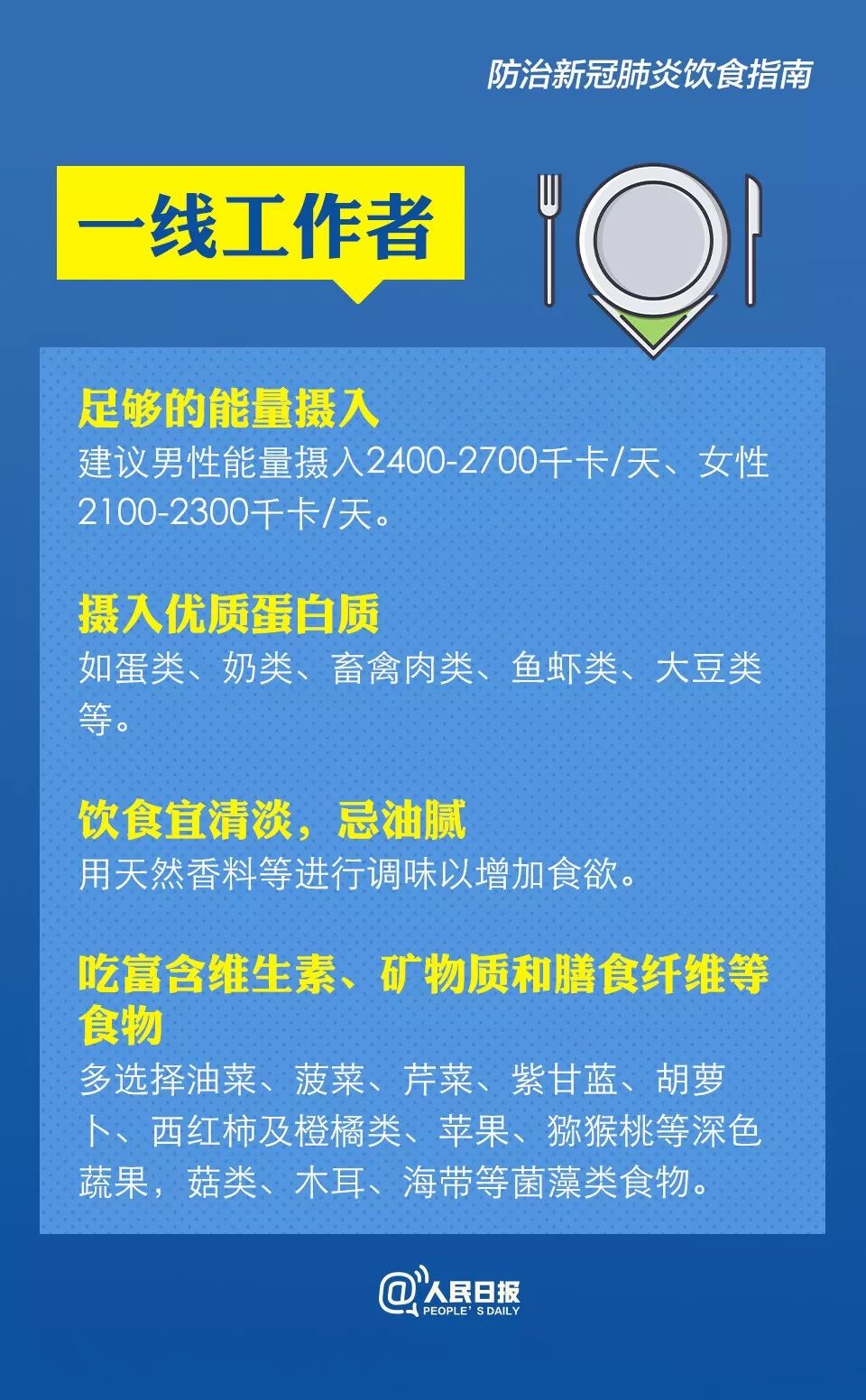 为方便大家查看,我们按照群体分类做成了图解,可以收藏下来或者转发给需要的人~让我们一起营养膳食,抗击病毒!