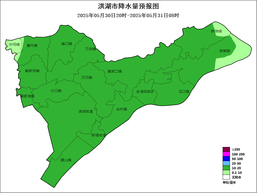 △洪湖市5月30日20时至31日08时降雨量预报图
