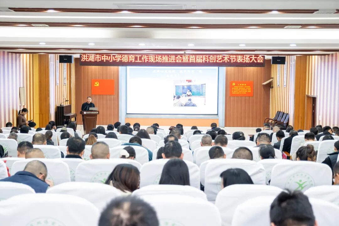 11月28日上午,洪湖市德育工作现场推进会暨首届科创艺术节表扬大会在洪湖市双语实验学校举行。来自全市市直学校、乡镇中心学校的分管校长、德育负责人及受表彰代表200余人齐聚一堂,通过沉浸式观摩、经验分享、表彰激励、部署推进,共同勾勒洪湖教育“五育融合”的发展新蓝图。