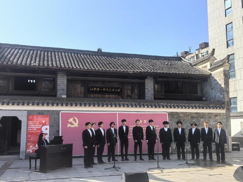 排练教室里的余音未散,歌声已在油铺湾1号党史陈列馆里响起。