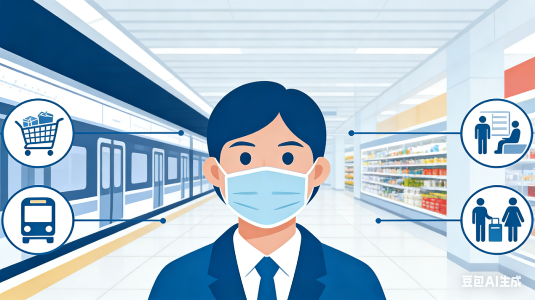 ★ 前往“密闭人多”场所时,前往环境闷、人多密集的超市、候车大厅,或乘坐公共交通工具时;