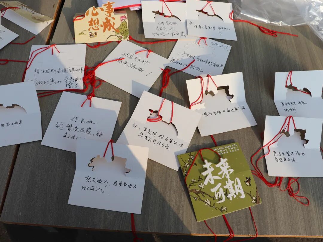 包饺子活动后,腰鼓队铿锵的鼓点将气氛推向高潮。来到“祈福乌林”写心愿环节,村民们认真书写对个人、家庭和村庄发展的美好祝福。“愿村里越来越美”“希望家人健康长寿”“希望孙子学业有成”……一句句朴实的心语,挂上枝繁叶茂的“心愿树”,承载着村民们对美好生活的向往。