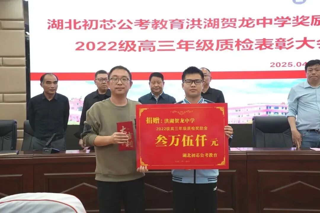 该公司向洪湖贺龙中学捐赠2022级高三年级质检奖励金35000元。