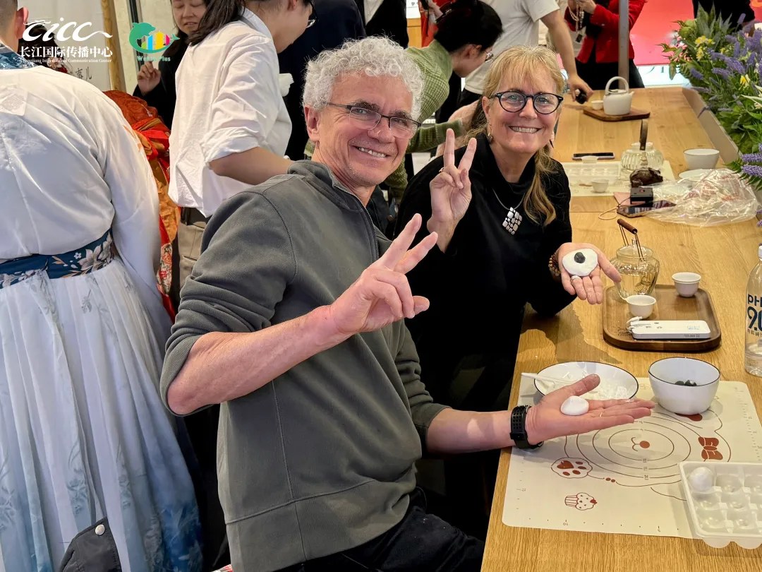 亲手制作的乐趣过后,品尝环节更添一份香甜。层次分明的叠式汤圆,外皮软糯弹牙,内馅绵密香甜,口感细腻温润,引得现场嘉宾连连称赞。已在武汉生活八年的法国友人 Manon,笑着回忆起第一次吃汤圆的感受:“很甜,让我觉得温暖又安心。” 在她眼中,法国人本就偏爱甜品,而汤圆带来的幸福感,和家乡的味道格外相似。