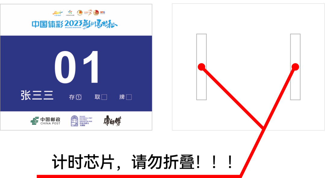 第二步:凭“领物小票”,根据号码前往指定位置领取参赛号码布,将“领物小票”交给志愿者核对完盖章后取回小票,并由选手在签字本上签字确认领取;