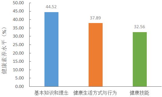 本次健康素养共调查全市8个县区,84个村(社区),调查对象为城乡15~69岁常住居民,共计抽取4826名样本量。监测结果显示:城乡居民基本知识和理念素养水平为44.52%,健康生活方式与行为素养水平为37.89%,健康技能素养水平为32.56%。