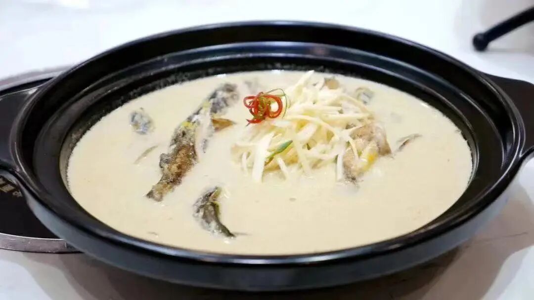 模样古怪嚣张,品质不输金鲳。蒿菜慢炖黄颡,汤汁浓白鲜香。