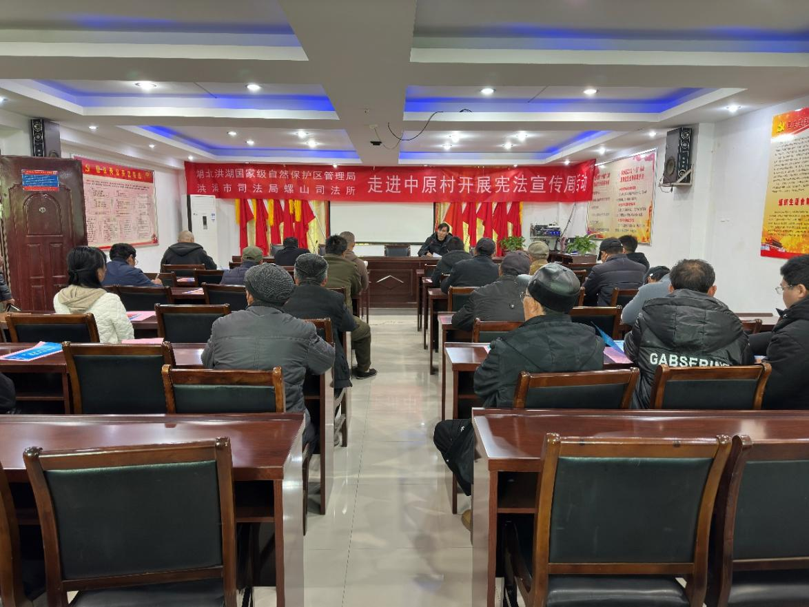 湖北洪湖国家级自然保护区管理局、螺山司法所和镇新时代文明实践所在螺山镇中原村开展宪法宣传活动,玉沙律师事务所受邀进行宪法宣讲。主讲律师用通俗易懂的语言向群众讲解了如何正确理解宪法、如何正确形式公民权利。宣讲活动穿插了问答环节,群众对在生产生活中遇到的问题进行咨询,现场详细解答。