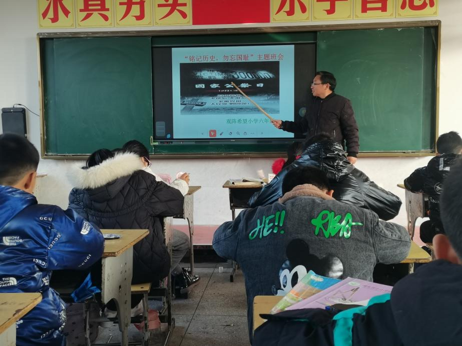 2023年12月13日是第10个南京大屠杀死难者国家公祭日,为了让学生勿忘国耻、铭记历史,进一步弘扬民族精神,增强学生爱国主义情怀,缅怀南京大屠杀的无辜死难者。螺山镇小学在全校范围内组织开展了主题为“铭记历史,勿忘国耻”的国家公祭日纪念活动。