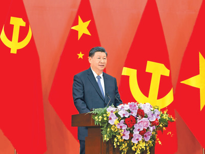 习近平代表中国党和政府向致力于中越友好的新老朋友致以亲切问候。习近平指出,昨天,我同阮富仲总书记一道宣布构建具有战略意义的中越命运共同体,开启了中越两党两国关系发展新阶段。这是我们从振兴世界社会主义和实现中越两国长治久安出发作出的重大战略决策,深深植根于中越传统友好,符合两国人民共同利益和共同愿望。