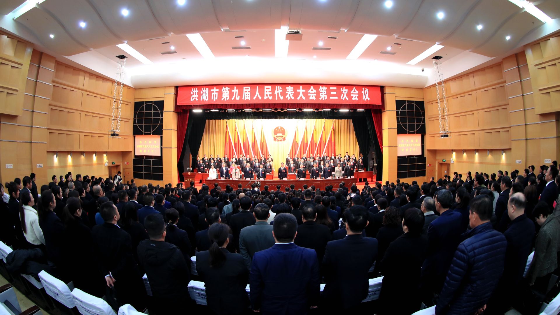 上午10时20分许,洪湖市第九届人民代表大会第三次会议在雄壮的国歌声中胜利闭幕。