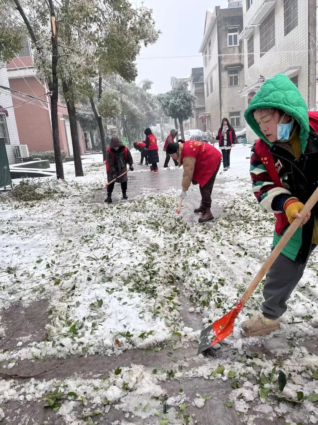 为有效应对冰雪天气,保障人民群众正常出行,洪湖市妇联迅速行动,全员上阵,及时号召全市女党员干部、巾帼志愿者下沉街道、社区组织,开展铲冰除雪志愿服务行动,及时清除小区入口、主干道、菜市场、老年公寓等周边冰雪,帮助孤寡老人出行,清理掉落在居民门口、街头巷尾冻断的树枝,为社区居民日常生活出行提供安全保障。