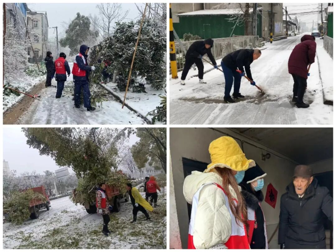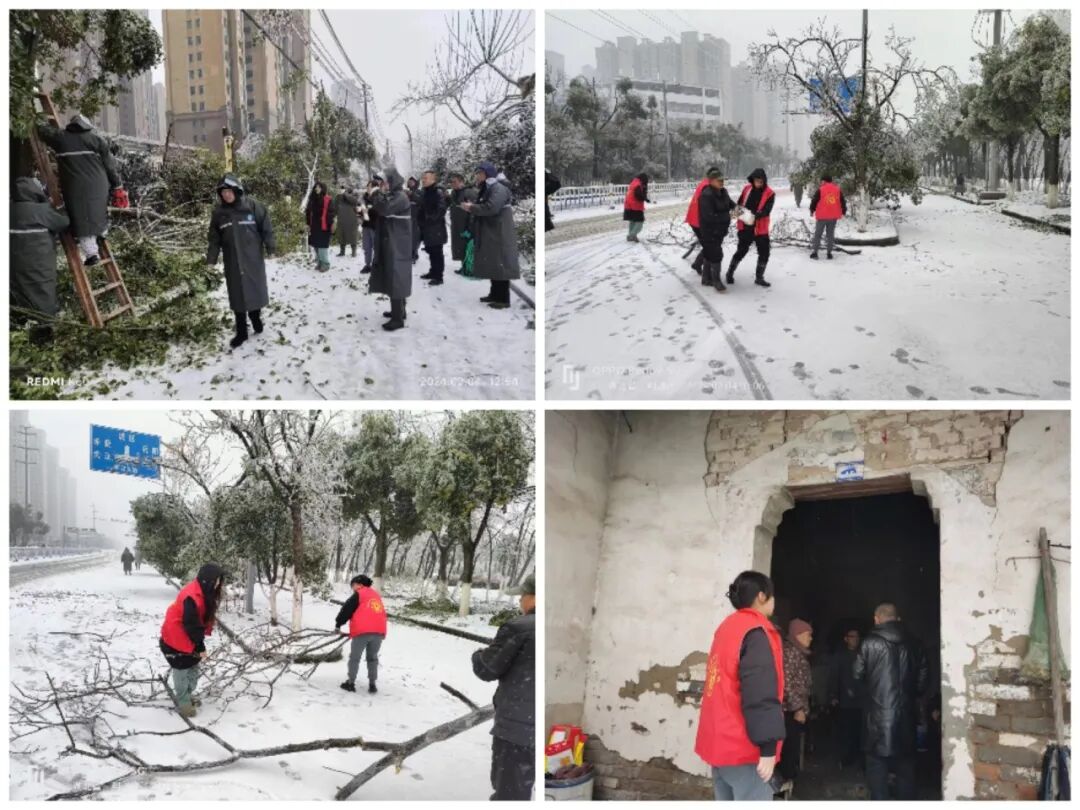 叶家门社区对道路交通、农村住房安全、房屋和农作物受灾等情况进行排查,并清理路旁树障断枝、铲雪除冰,在电线被压低处拉好警戒线并联系市供电部门及时抢修、处理电杆倒塌隐患,上门为种植大棚户做好极端低温天气宣传,排查安全隐患。
