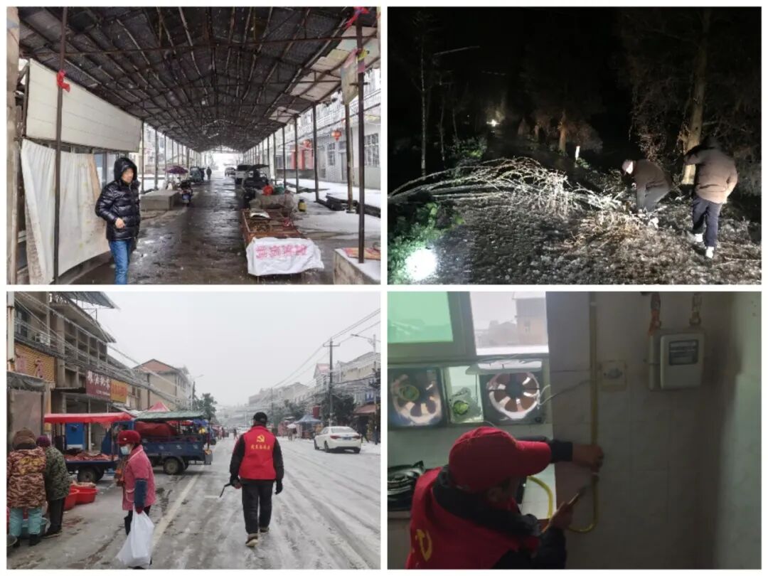 石码头社区对辖区道路、农贸市场等重点区域和农村住房安全和农作物受灾等重点情况进行排查,并及时清理路旁树障断枝、铲雪除冰,截至目前共清理了11处断裂树枝、抢修1处电线线路;农贸市场目前无商户经营,已在入口处拉好警戒线提示。