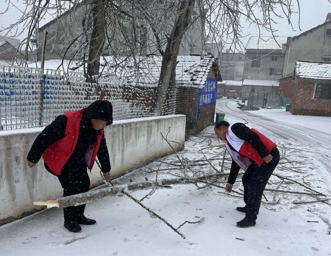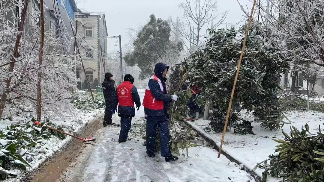 ▲2月4日,曹市镇组织志愿者开展清雪除冰、清理树障断枝