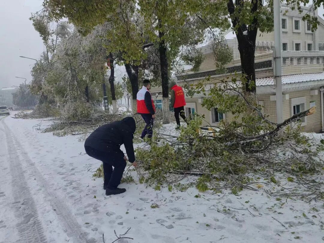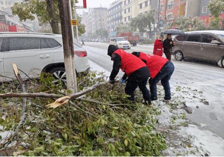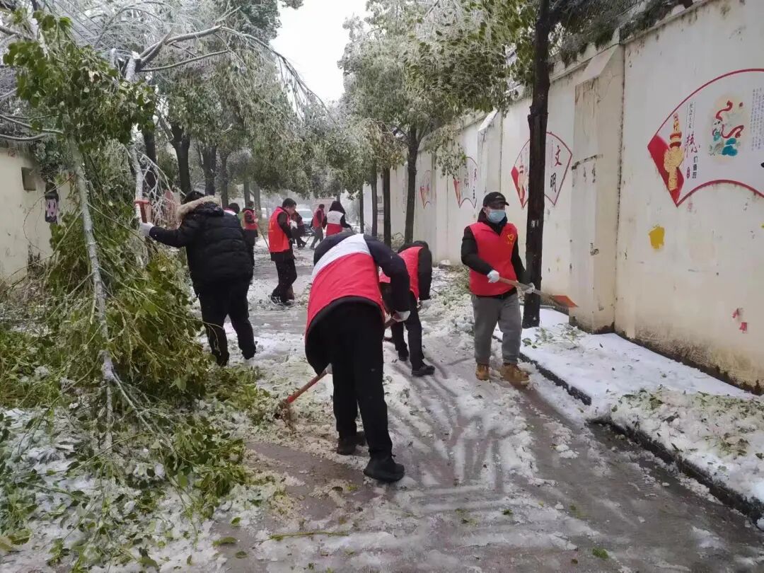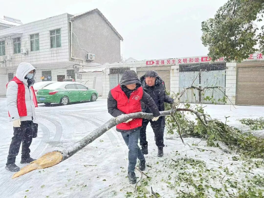 ▲2月4日,市住建局组织党员干部开展铲冰除雪、搬运断裂树枝志愿服务活动