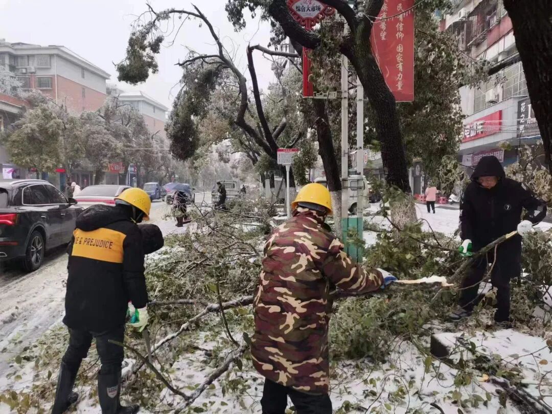▲2月4日,洪湖经济开发区开展铲冰除雪、清理树障
