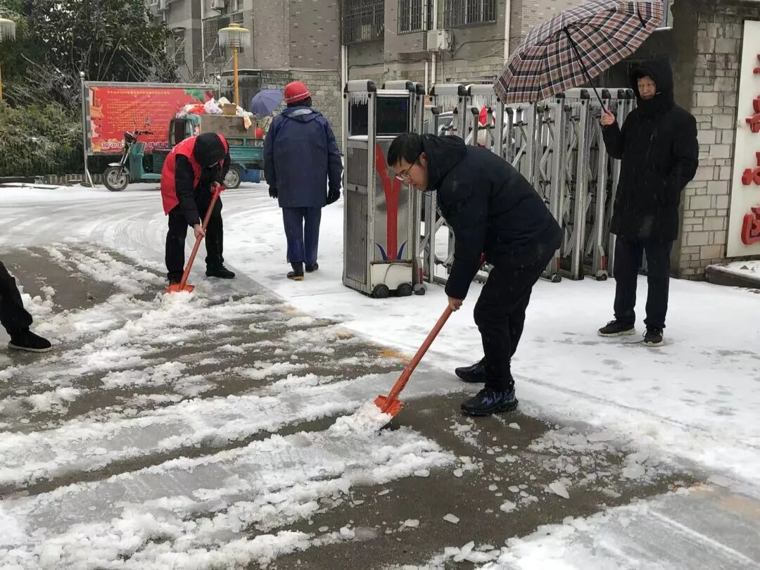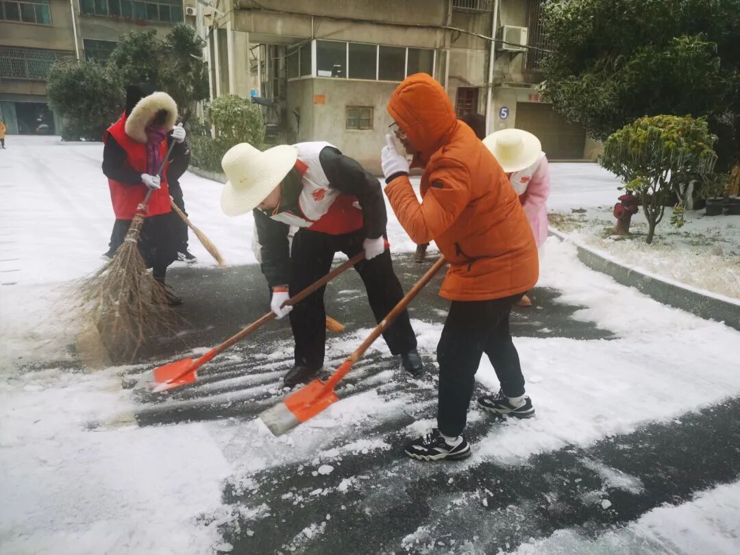 ▲2月4日,洪湖市人社局党员干部下沉玉沙社区,全面开展清雪除冰行动