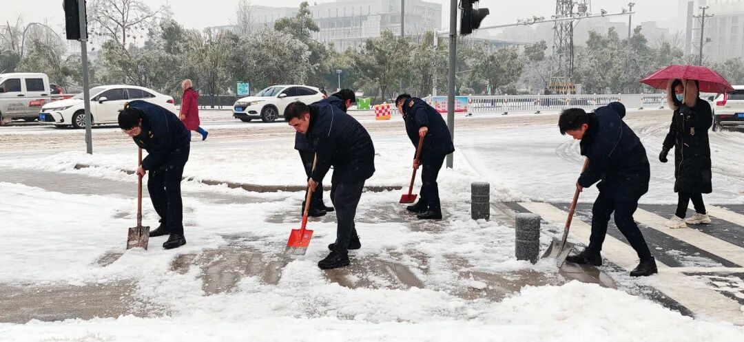 ▲2月4日,洪湖市人民检察院各部门干警开展扫雪除冰行动