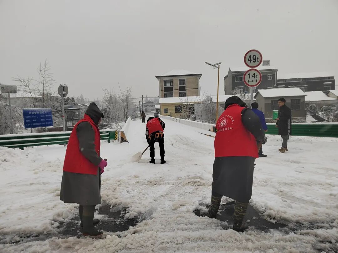 ▲峰口镇组织干部职工集中铲除积雪、清障除杂
