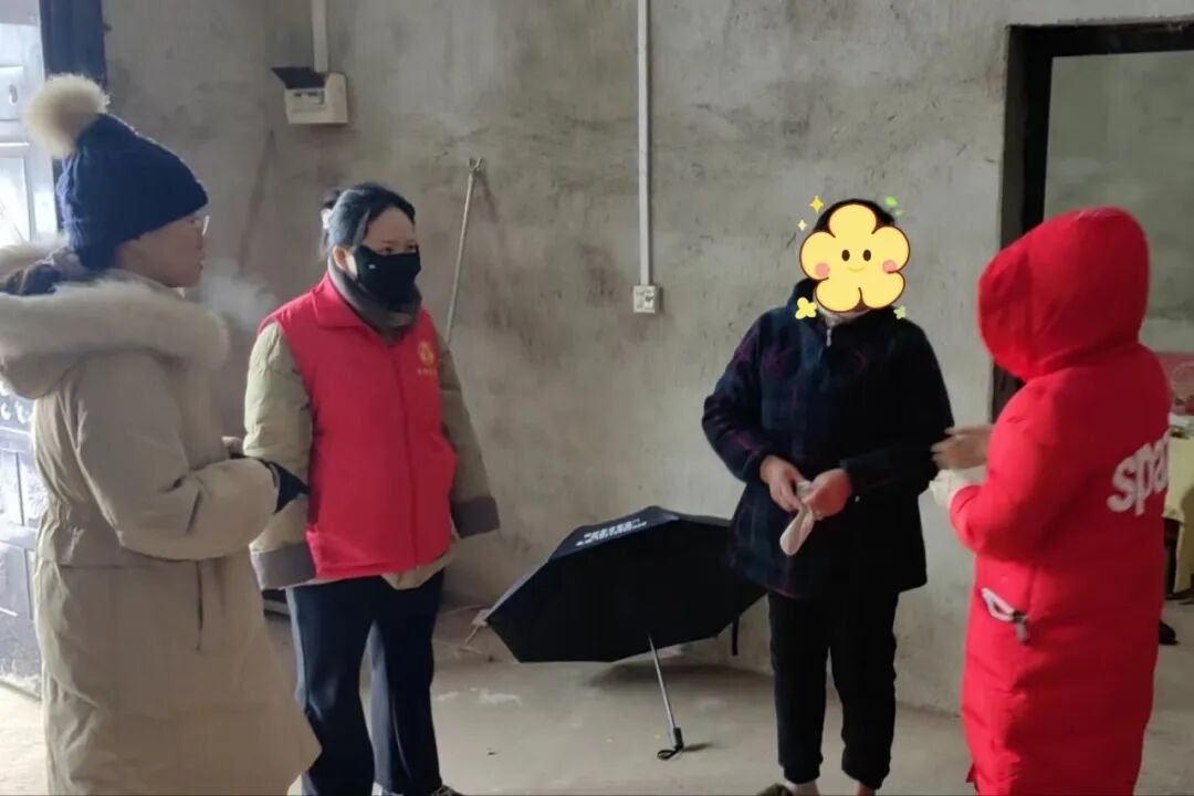 燕窝镇妇联执委在大雪天上门慰问困难老年妇女,帮忙除去门前屋后的冰雪,嘱咐老人注意防寒保暖和冬天用火用电、交通出行安全。