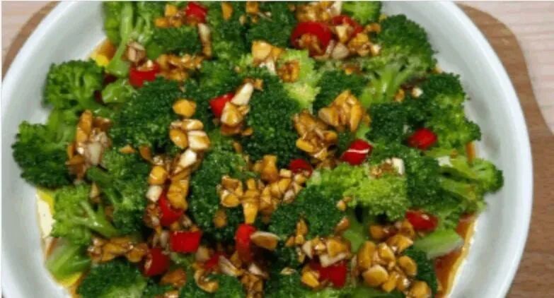 将西兰花掰成均匀的小块,锅中烧水,加入食盐和食用油,水开后将西兰花焯水1分钟,捞出后冷水冲洗,大蒜、小米辣切成碎末备用。锅中放油,将大蒜放入煸炒,加入蚝油,炒匀,加入一碗清水,放入小米辣,加入水淀粉,使酱汁粘稠,将料汁浇在西兰花上。