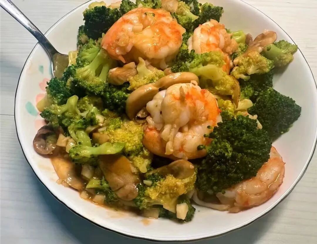 将西兰花清洗干净切成小朵,虾清洗干净,去虾线剥壳备用。碗里放入蒜末、盐、生抽、玉米淀粉、水,搅拌均匀备用,锅中水烧开,放入油和盐。水开后下入西兰花,焯水3分钟捞出,另起锅中油热下虾仁,炒至变色,放入西兰花,淋入料汁,翻炒均匀,大火收汁即可。
