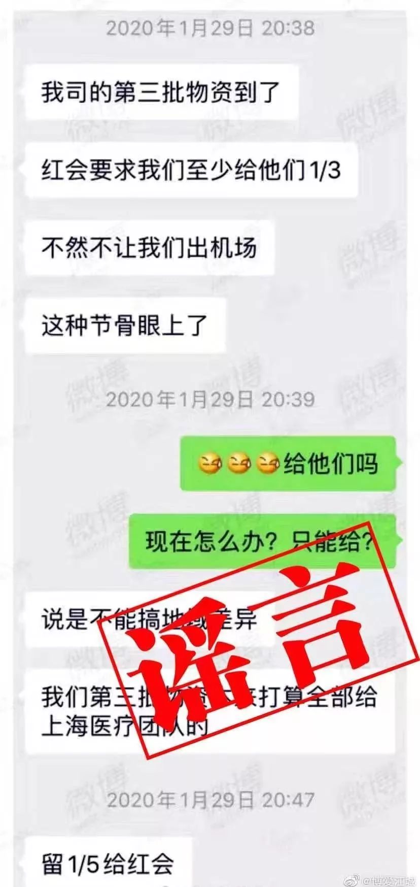 谣言十:武汉红十字会拦扣上海医疗队专用医疗物资