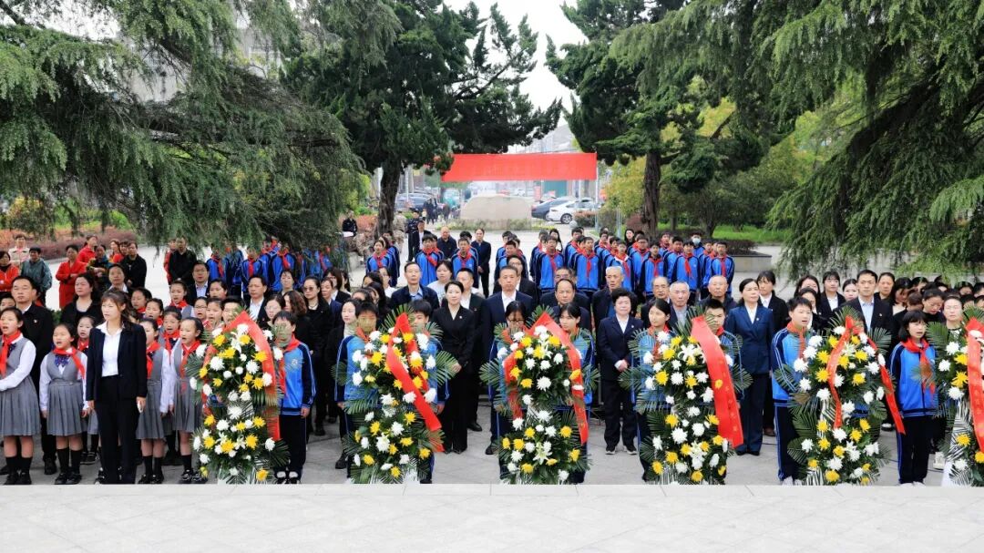 在庄严肃穆的戴家场秋收暴动纪念碑前,整齐高亢的旋律响起,全场齐声高唱中华人民共和国国歌。全体人员怀着崇敬之情瞻仰纪念碑,向革命烈士默哀,敬献花篮、整理缎带,表达对烈士的敬仰和怀念之情。在纪念碑下,少先队员们献唱《我们是共产主义接班人》。市关工委“五老”代表为现场全体人员宣讲刘绍南英雄故事;市妇联现场宣读了红色文化进家庭活动倡议书;学生们还开展了诗朗诵《缅怀先烈,致敬英雄》,红歌表演《中华少年》。
