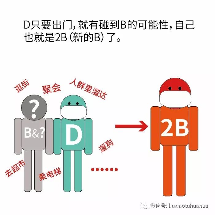 这时候,只要一直居家的D不出门,就可以避免接触B,这样就会从根源上杜绝了二次传染。