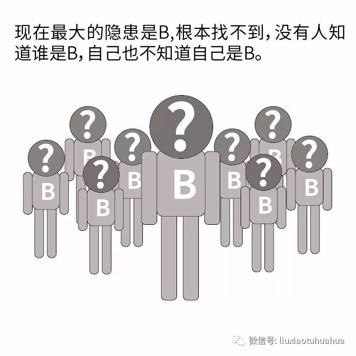 现在,最大的隐患是B,根本就找不到,没有人知道谁是B,自己也不知道自己是B。