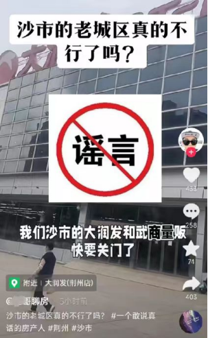 2024年3月23日,沙市区从事二手房销售的龙某为博眼球、赚流量而信口雌黄,无端编造“沙市区两家大型超市即将关门”的谣言,并通过其抖音账号进行传播,严重扰乱社会秩序。