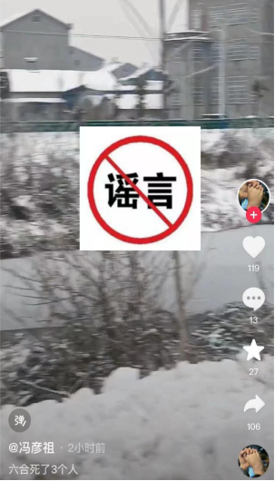 2024年2月5日,冯某为博取关注,编造“江陵六合垸大桥堵车,有三人被撞身亡”的谣言,并通过其抖音账号进行传播,造成严重不良社会影响。