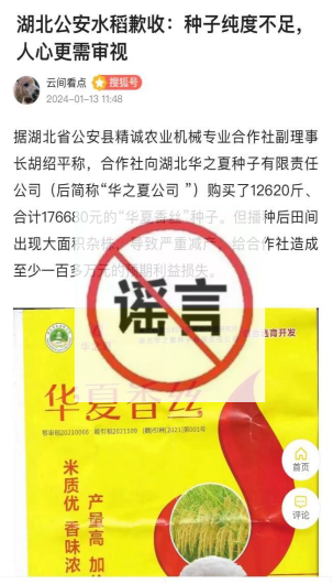 2024年1月13日,王某为发泄不满情绪,编造“湖北华之夏种子有限责任公司售卖的‘华夏香丝’种子有质量问题,导致种植户欠收”的谣言,并在互联网平台进行传播,对企业正常经营造成较大负面影响。