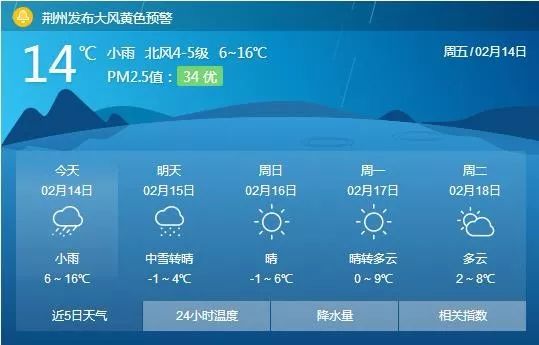 明天洪湖最高温度只有4℃