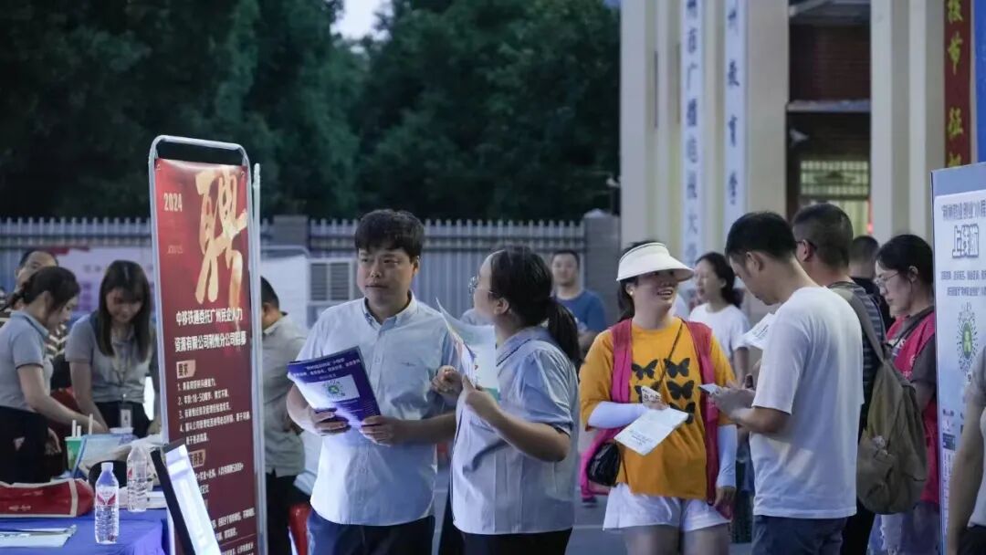 华灯初上,在荆州理工职业学院东校区(江津东路100号大门广场),别开生面的夜市招聘会现场十分热闹。记者看到,鑫翔汽车、喜多方、大佰汇等企业现场揽才,岗位覆盖商贸流通、文化教育、机械制造等热门行业,各个招聘展位前聚满了人。活动以“家门口就业”和新业态岗位为主,许多高校学子、失业青年等求职者前来就近就地选岗择业,用工双方就工作环境、薪资待遇、晋升发展等进行推心置腹的交流,形成一道独特的夜市风景。