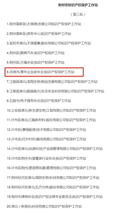为第三批荆州市知识产权保护工作站授牌
