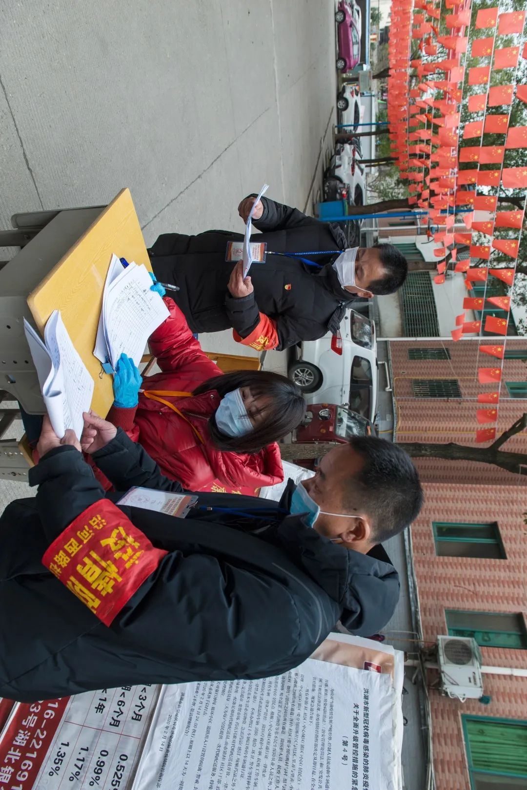5:00 在玉沙社区值守点,三名值守人员坚守岗位,严防市民违规出行,落实逐一查验、逐一测温、逐一登记。