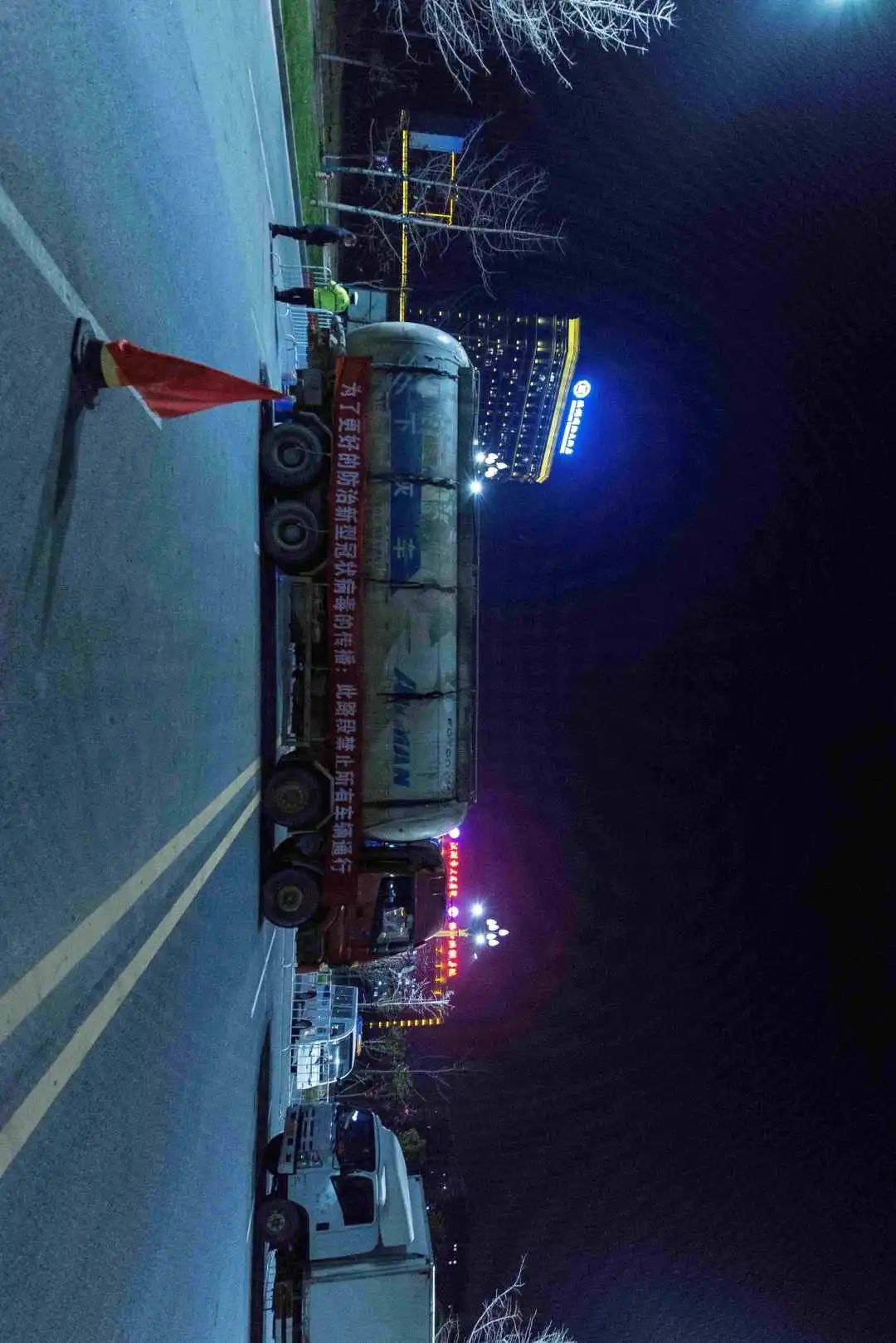 23:00 在由市城管执法局负责的大市场管控点,值守人员正示意过路司机停车,测量体温,询问行踪,没有问题后随即放行,如此简单重复,却不能出现一个错漏。