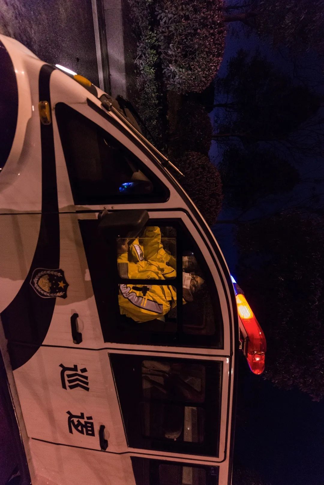 2:00 在名流大道四桥附近,两名值班民警驾驶着巡逻警车执行夜间巡逻任务,确保“人不出户、车不上路”。