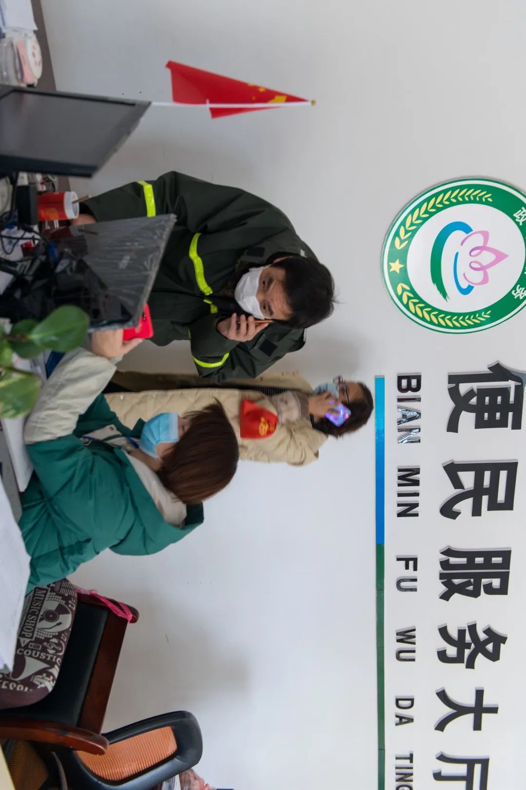 11:00 春雨亭社区办事服务厅工作人员正在忙碌,努力在特殊时期为广大群众提供便利,做到防疫期间服务“不打烊”。